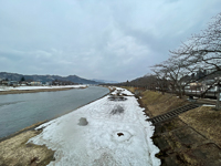 ![]() もう春だけど 川沿いには雪が残ってるね。 |
